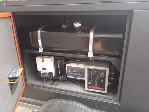 Уровень заряда аккумуляторов отслеживает контроллер, при низком заряде они автоматически подзаряжаются от солнечных панелей. Если же солнечные панели не в состоянии обеспечить достаточный заряд, автоматика включает дизель-генератор для дозарядки, а после того, как система зарядится, отключает его. Ещё одним преимуществом системы «Аргус Страж» является то, что разворачивается она всего за 2 минуты.