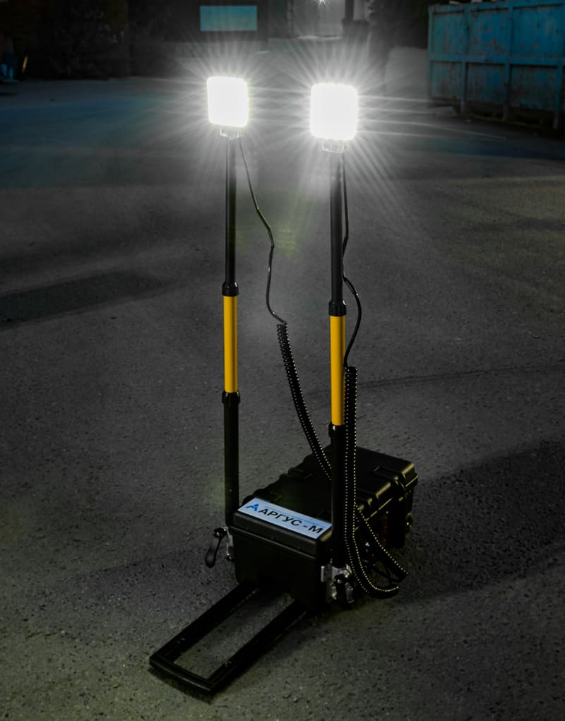 Высота подъема фонарей до 2м в рабочем положении.